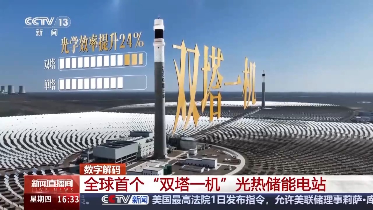 通过一组关键数据,在全球范围内将第一个“两塔和一台机器”光热储能电站解码。